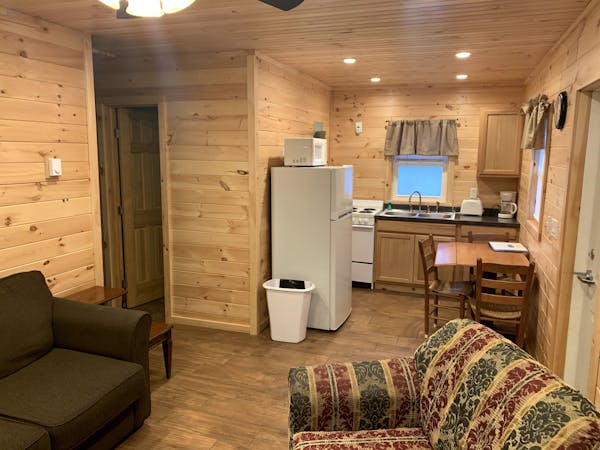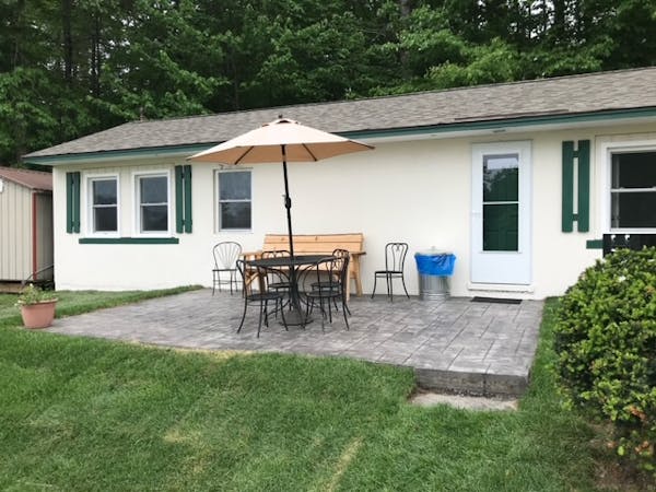 Our cozy cottages have a kitchen, living room, full bath with tub, and 2 bedrooms. Bedrooms have a total of 3 queen beds. Cottages have a fully equipped kitchen with dining table and chairs. The cottage also has a private deck with seating and charcoal barbeque. Included are air conditioning, heat, and cable tv. Bed linens are provided with beds made prior to arrival. Cottage guests bring their own bath and swim towels.