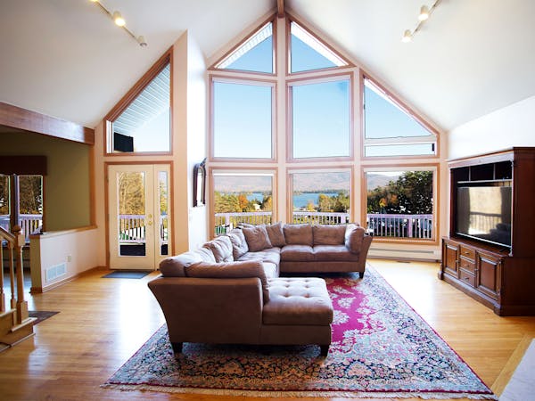 Beautiful, grand 6 bedroom house with stunning views of Lake George and the surrounding mountains. House is located at a resort and includes resort amenities such as heated pool and lake access. NOTE: This six bedroom house is not pet-friendly. Lake access is a short walk and across the street from the house. House has 6 bedrooms that sleep up to a total of 14 people. Great for extended families or for families to share. There is one bedroom with a king bed, 4 bedrooms with queen beds, and a bedroom with 2 queen beds. Master bedroom has a balcony and an en-suite and one of the other bedrooms has direct access to the deck. House has a total of 5 bathrooms. There are 3 full bathrooms, a bedroom with a stall shower, and 1 half bathroom. House has a large great room, a large kitchen, and 2 dining areas. Lake views are visible throughout the house and on the outdoor deck. Deck has dining and sitting areas. Access to house requires going up a short flight of stairs. Docking available for $300 per week (based upon availability.) House is conveniently located 4 miles north of Lake George Village. Bed linens provided. Guest provide own bath and pool towels. Tax rate for this unit is 4%. Tax amount will be reduced to 4% after booking. For more information about this house visit https://lakegeorgehouseforrent.com/