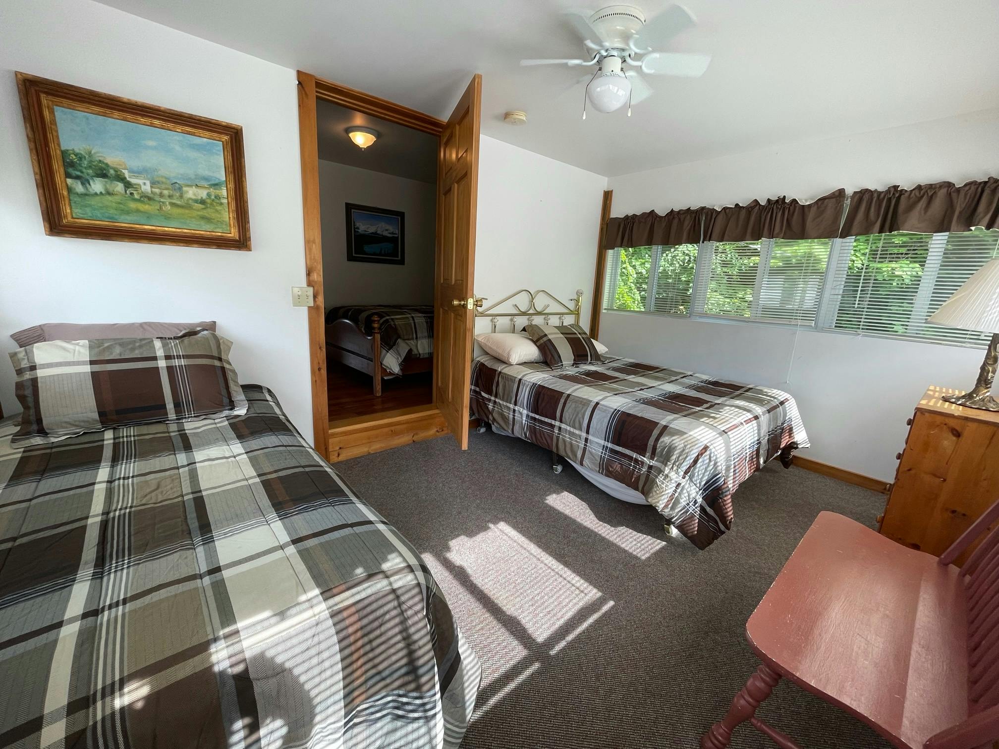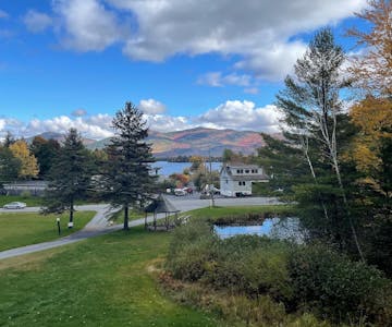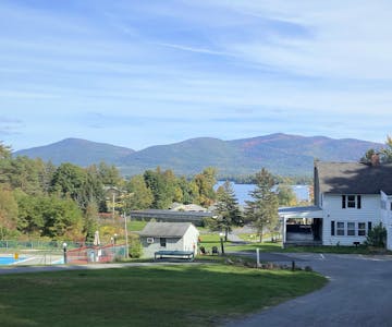5 Bedroom house with stunning views of Lake George and the surrounding mountains. House is pet friendly. Included is Lake George beach access and access to a heated pool. House can accommodate a total of 10 guests. Included is a full kitchen with counter seating, living room with gas fireplace, a dining room plus a large outdoor covered porch with areas for sitting and dining. Beautiful views from porch. The five bedrooms are on the second floor of the house and a full bathroom is also on the second floor. There is an additional full bathroom on first floor. One of the bedrooms requires passing through another bedroom to access.